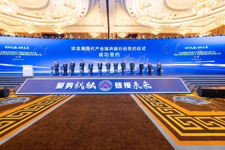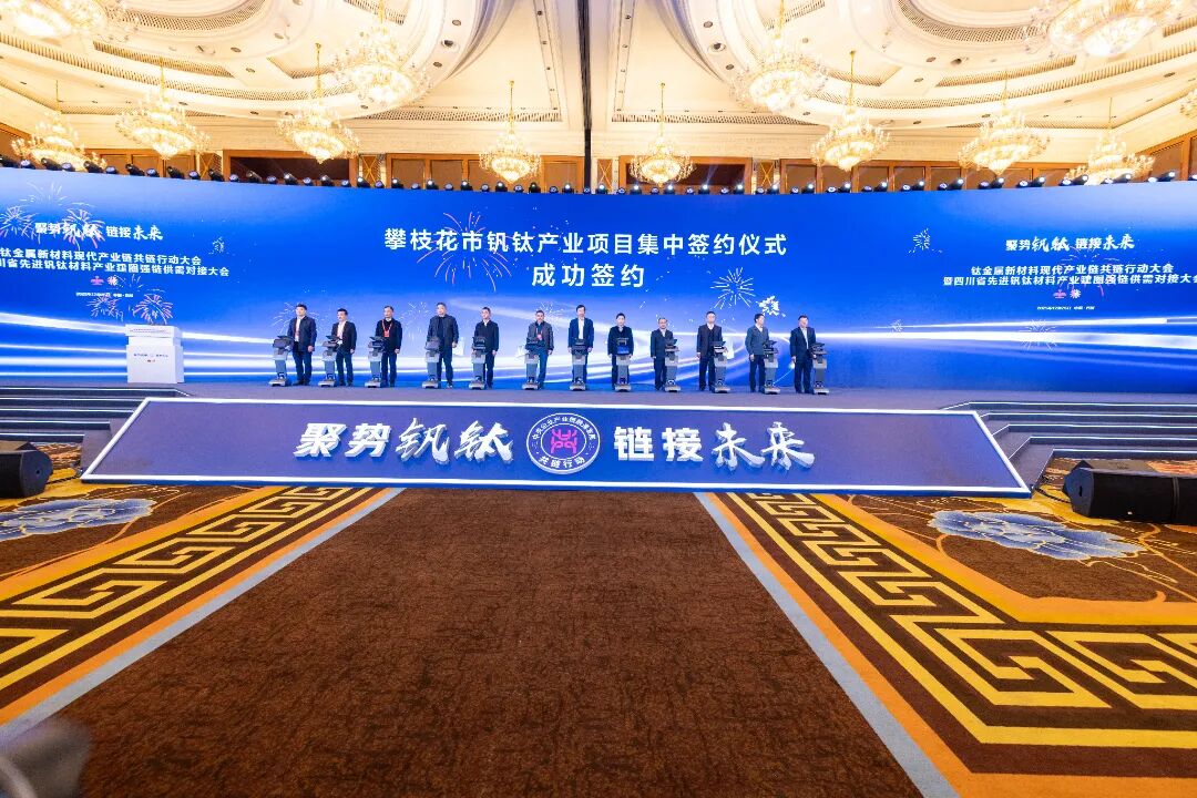 12月25日,在钛金属新材料现代产业链共链行动大会暨四川省先进钒钛材料产业建圈强链供需对接大会上,现场进行了3轮签约,成功签约9个供需合作协议,13个钒钛产业化及智改数转项目,签约总金额达到85亿元。